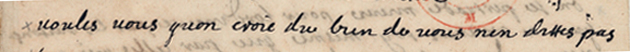 Transcription : « voules vous quon croie du bien de vous nen dittes pas ».